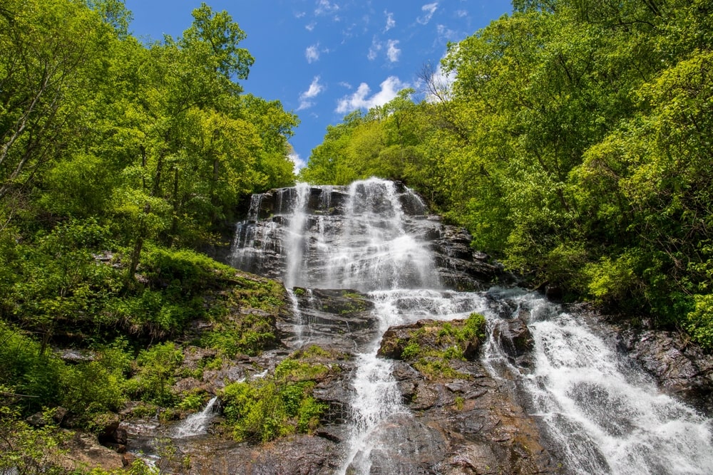 Located within the scenic Chattahoochee National Forest, this tall, steep waterfall provides an impressive perspective. The waterfall is viewable from the roadside, but to get a good view, you’ll need to ascend a somewhat steep and slippery slope.