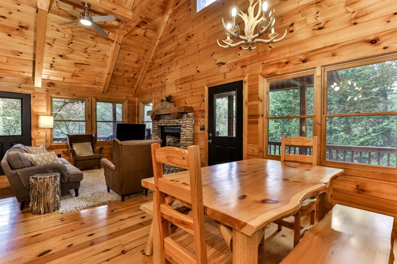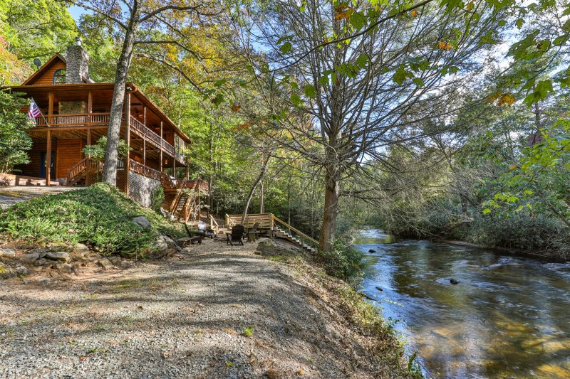 Situated right on Fightingtown Creek, this pet-friendly log cabin seamlessly blends rustic charm with modern comfort. Three bedrooms and baths offer a variety of accommodations. Lounge under vaulted wood beams by the stone gas fireplace, play in the game room with a pool table and basketball, and gather at the live-edge table for 6–8. Outside, soak in the hot tub, roast s’mores at the firepit, and wander steps to the creek—minutes to downtown Blue Ridge for dining, hikes, orchards, and the Scenic Railway.