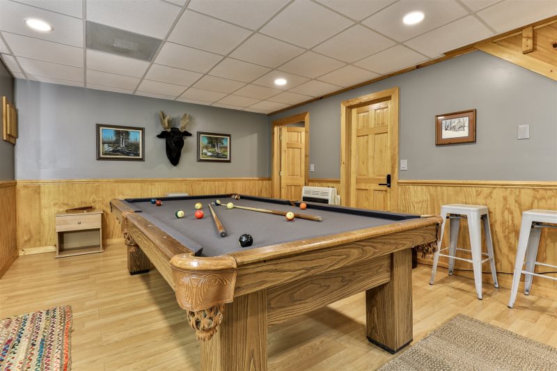 Downstairs, the game room brings the fun: rack ’em up on the pool table, shoot hoops on the basketball game, or kick back in the TV/sitting area between rounds. With a full bath on this level, everyone can play, clean up, and keep the good times rolling.
