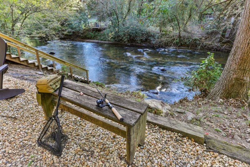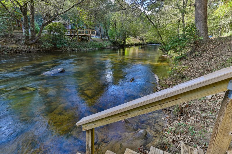 Follow the steps down to the water for creekside magic, or claim a spot at the firepit to toast s’mores under the stars while the current provides the soundtrack. The outdoor hot tub overlooks the creek—perfect after a waterfall hike or a day on Lake Blue Ridge.