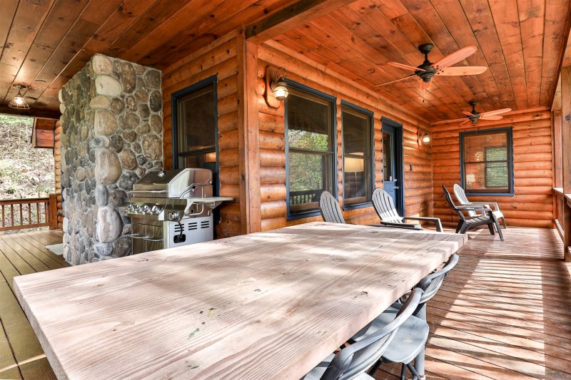 The covered porch was made for lounging and lingering: Adirondack chairs for lazy afternoons, a dining table for 6 for al fresco dinners, and a gas grill ready for your favorite veggies and kebabs—all with the steady hush of Fightingtown Creek below.