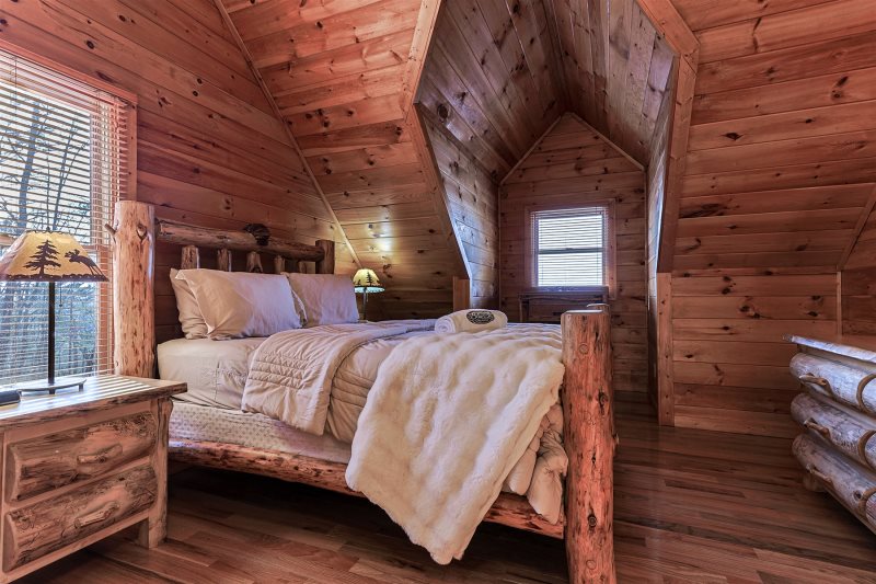 - Upper-Level Queen bedroom with Smart TV, Private Bathroom with Shower