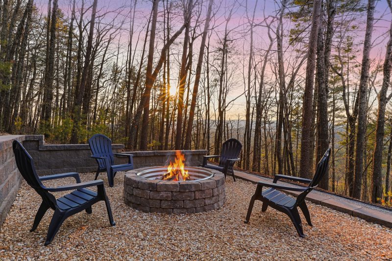 A hot tub provides a relaxing place to unwind, while the firepit area invites evenings under the stars.