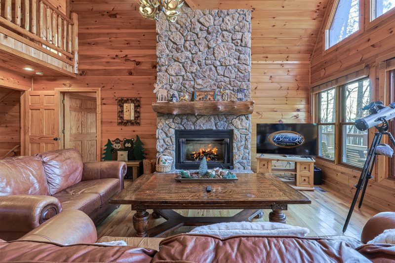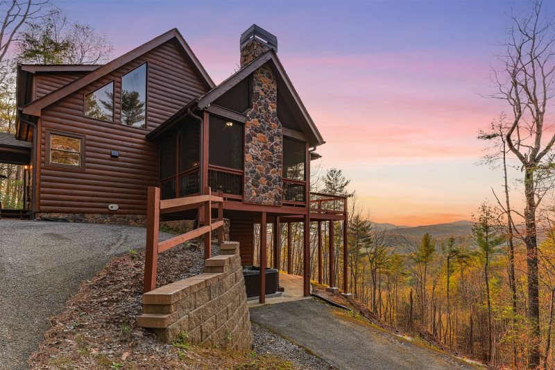 Take in unforgettable mountain sunsets from this private Blue Ridge retreat designed for relaxing and reconnecting. Dine on the deck, unwind on the screened porch by the fireplace, or soak in the hot tub after a day of exploring. Inside, vaulted ceilings, two fireplaces, and a game-filled lower level with a pool table create space for both quiet moments and time together. With 4 bedrooms and room for 8, Sunset View blends comfort, scenery, and true mountain charm.